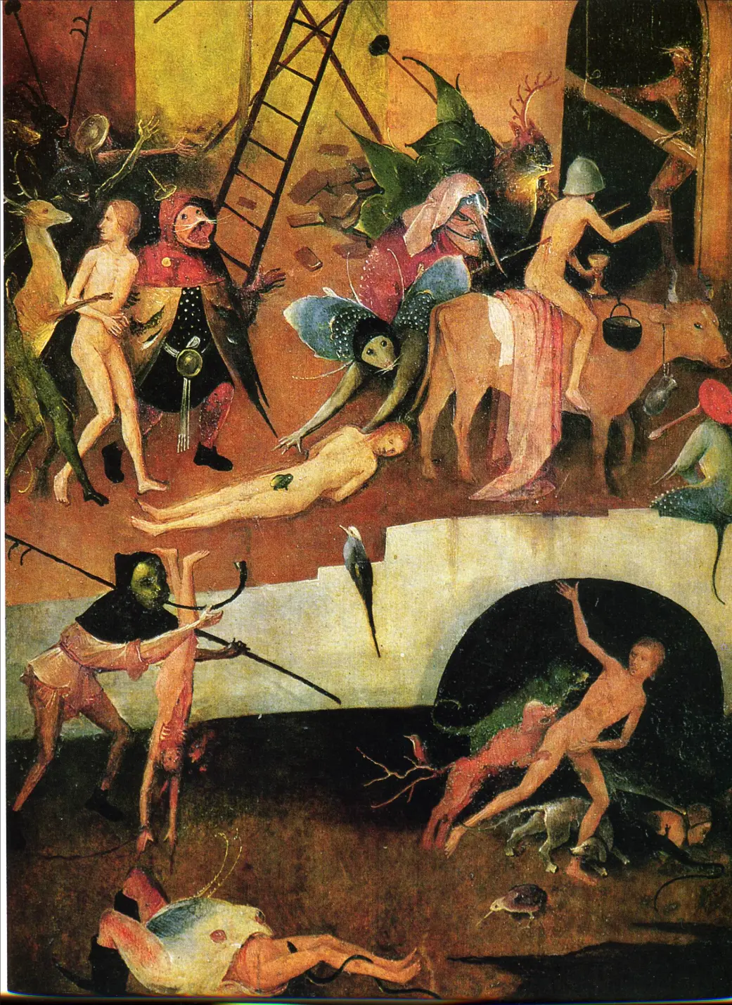 - Groteske und Surrealismus: Seine Darstellungen von fantastischen Kreaturen und Höllenszenen haben einen stark surrealistischen Charakter. Die grotesken Figuren und bizarren Szenarien schaffen eine einzigartige visuelle Erfahrung.