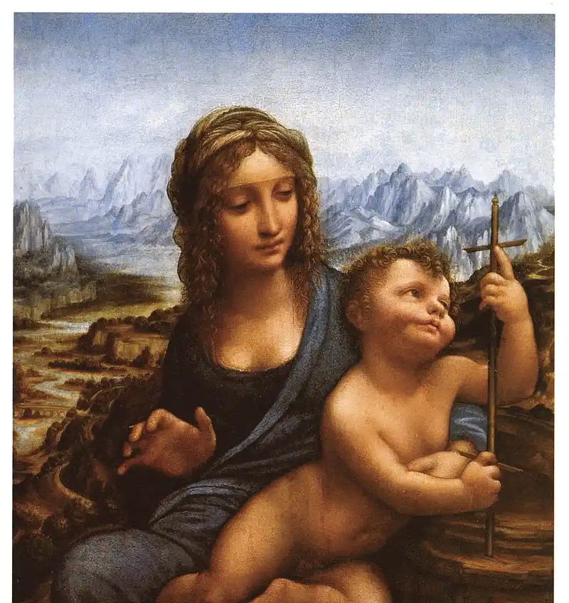 - Lebendige Farben: Leonardo verwendete eine lebendige Farbpalette, die seinen Arbeiten eine besondere Tiefe und Lebendigkeit verleiht. Seine Technik des Sfumato ermöglichte es ihm, weiche Übergänge zwischen Farben zu schaffen, wodurch die Formen sanft und natürlich erscheinen. Diese Farbgebung trägt wesentlich zur realistischen Wirkung seiner Gemälde bei.