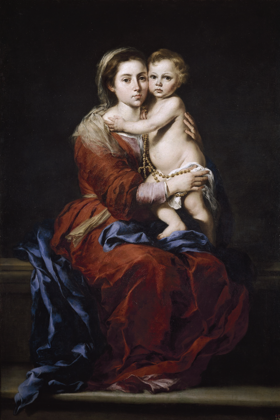 - Maria mit dem Jesuskind und Rosenkranz (La Virgen del Rosario, ca. 1670) – Gemäldegalerie Alte Meister, Dresden