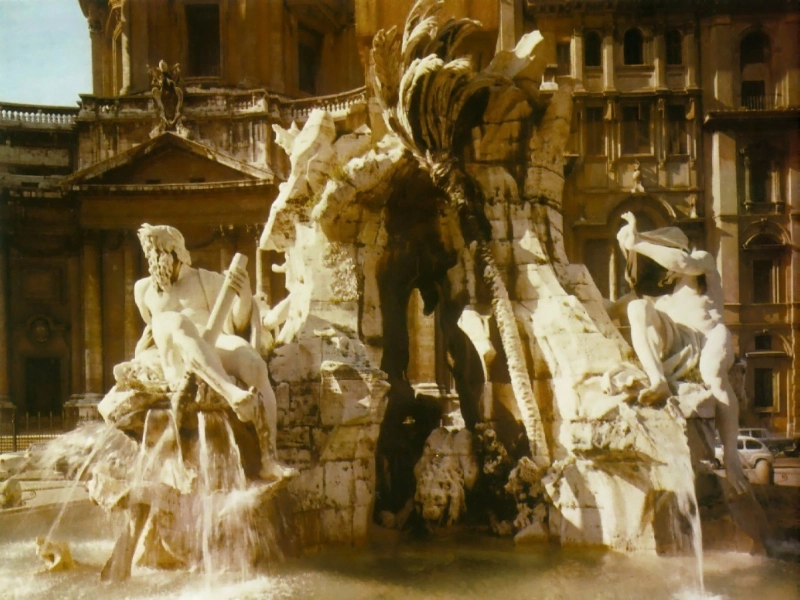 • Vierströmebrunnen (Fountain of the Four Rivers, 1648–1651) – Piazza Navona, Rom