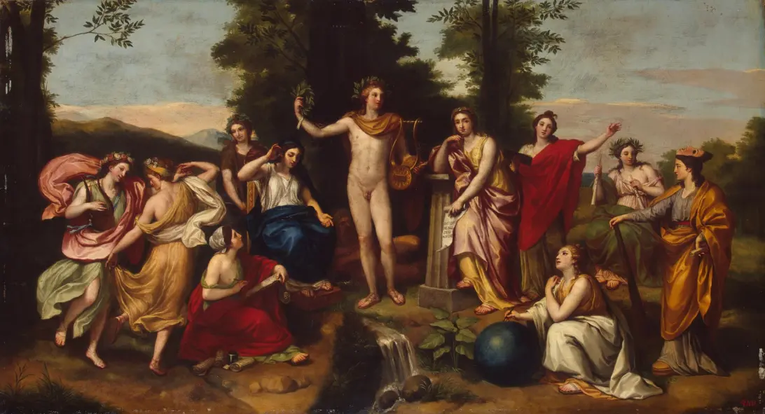 - Der Parnass (Studie) (Parnassus, Study, 1760) – Villa Albani, Rom (Ölskizze)