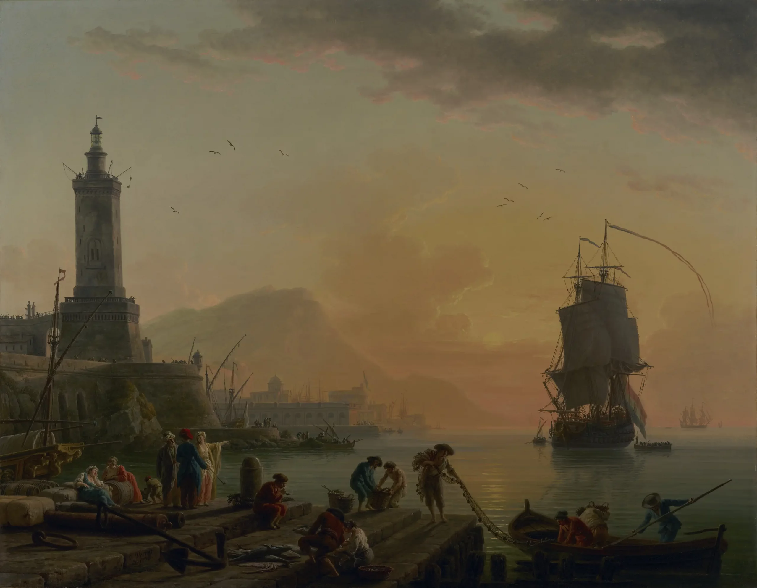 - Detailgenauigkeit: Vernets Werke sind bekannt für ihre akribische Detailtreue, insbesondere bei der Darstellung von Schiffen, Gebäuden und anderen architektonischen Elementen.