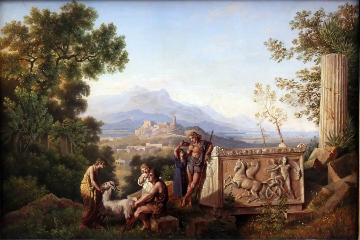 - Griechische Landschaft mit Tempelruine und Hirten (Greek Landscape with Temple Ruins and Shepherds, ca. 1805–1810) – Alte Nationalgalerie, Berlin